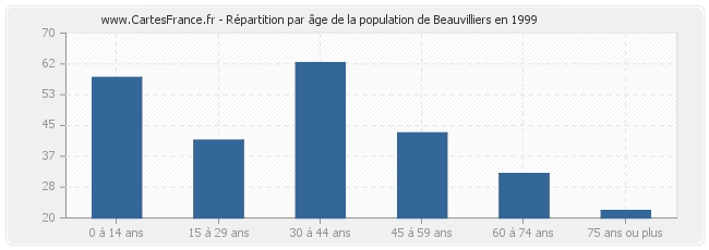 - Population de Beauvilliers de 30 à 44 ans : 62 habitants