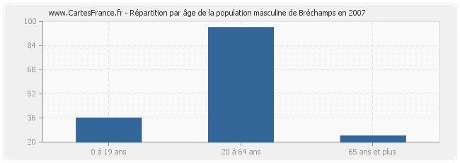 Répartition de la population masculine de Bréchamps par âge en 2007 :