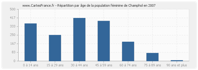 Répartition de la population féminine de Champhol par âge en 2007 :