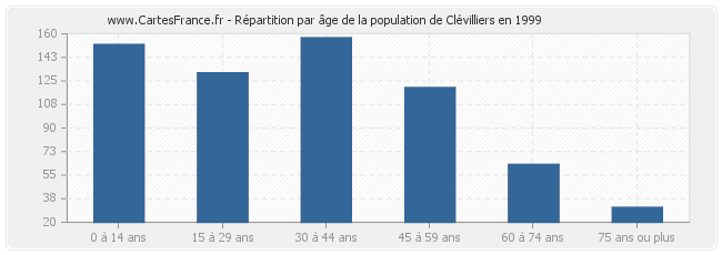 - Population de Clévilliers de 30 à 44 ans : 157 habitants