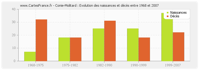 Conie-Molitard : évolution des naissances et décès de 1968 à 2007