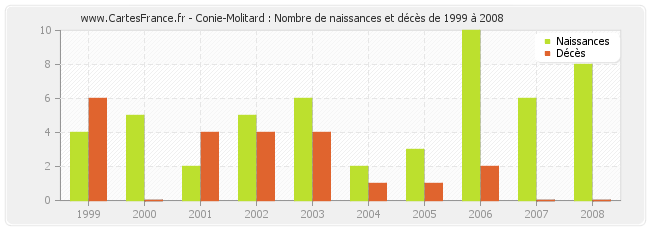 - Conie-Molitard en 2006 : 10 naissances et 2 décès