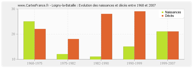 Loigny-la-Bataille : évolution des naissances et décès de 1968 à 2007