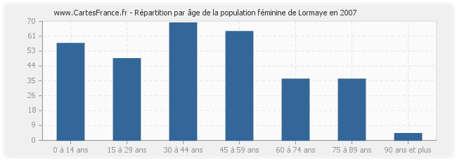 Répartition de la population féminine de Lormaye par âge en 2007 :