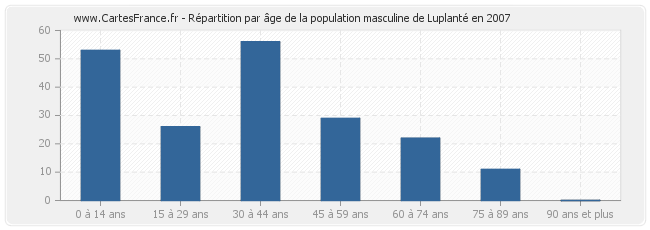 Répartition de la population masculine de Luplanté par âge en 2007 :