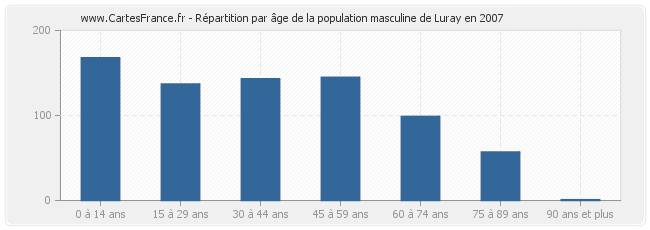 - Hommes de 0 à 14 ans habitant Luray : 168