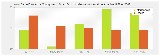 Montigny-sur-Avre : évolution des naissances et décès de 1968 à 2007