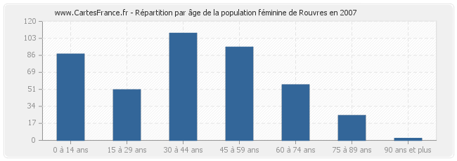 Répartition de la population féminine de Rouvres par âge en 2007 :