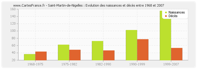 Saint-Martin-de-Nigelles : évolution des naissances et décès de 1968 à 2007