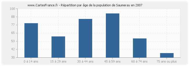 - Population de Saumeray de 30 à 44 ans : 69 habitants