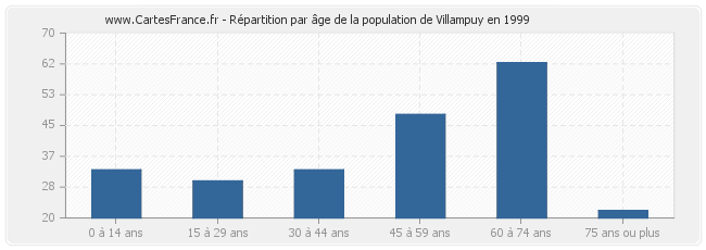 - Population de Villampuy de 60 à 74 ans : 62 habitants