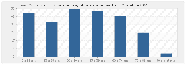 - Hommes de 0 à 14 ans habitant Ymonville : 45