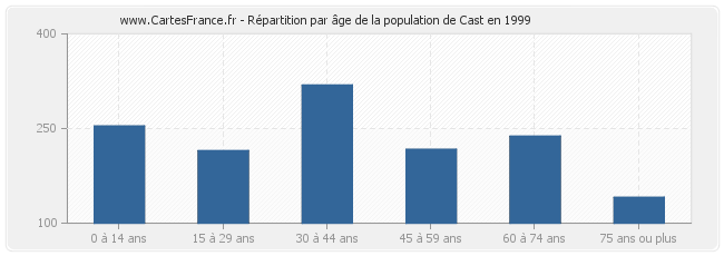 - Population de Cast de 30 à 44 ans : 319 habitants