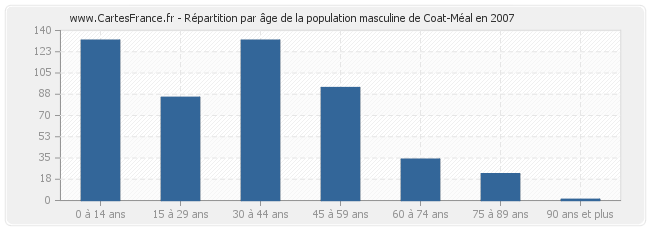 - Hommes de 0 à 14 ans habitant Coat-Méal : 132