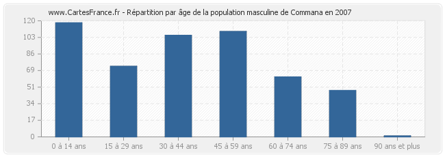 - Hommes de 0 à 14 ans habitant Commana : 118