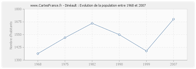 La population de Dinéault était de 1 702 habitants en 2007, 1 390 habitants en 1999, 1 550 habitants en 1990, 1 661 habitants en 1982, 1 520 habitants en 1975 et 1 364 habitants en 1968.