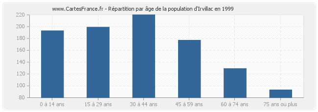 - Population d'Irvillac de 30 à 44 ans : 220 habitants