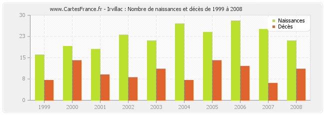 - Irvillac en 2008 : 21 naissances et 11 décès