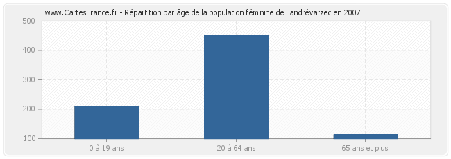 Répartition de la population féminine de Landrévarzec par âge en 2007 :