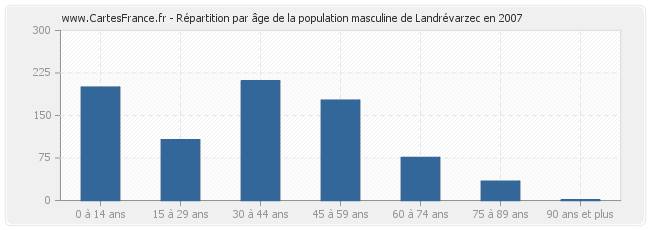 Répartition de la population masculine de Landrévarzec par âge en 2007 :