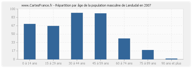 Répartition de la population masculine de Landudal par âge en 2007 :