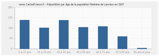 Répartition de la population féminine de Lanvéoc par âge en 2007 :