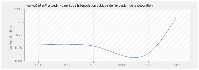 Cette courbe reprend l'historique de la population de Lanvéoc de 1968 à 2007 en interpolation cubique. Ceci permet d'obtenir plus précisément la population de la commune de Lanvéoc les années ou aucun recensement n'a été effectué.