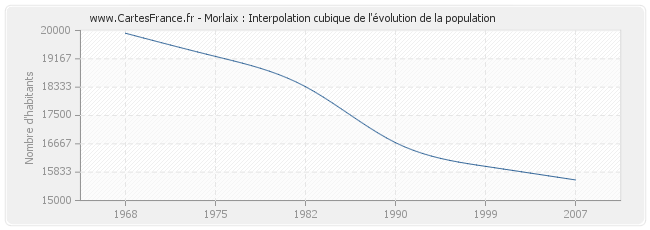Cette courbe reprend l'historique de la population de Morlaix de 1968 à 2007 en interpolation cubique. Ceci permet d'obtenir plus précisément la population de la commune de Morlaix les années ou aucun recensement n'a été effectué.