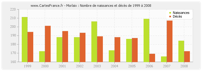 - Morlaix en 1999 : 211 naissances et 194 décès