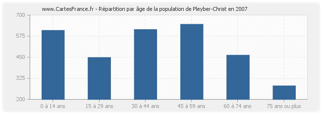 - Population de Pleyber-Christ de 45 à 59 ans : 645 habitants