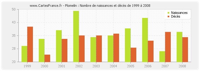 - Plomelin en 2008 : 37 naissances et 34 décès