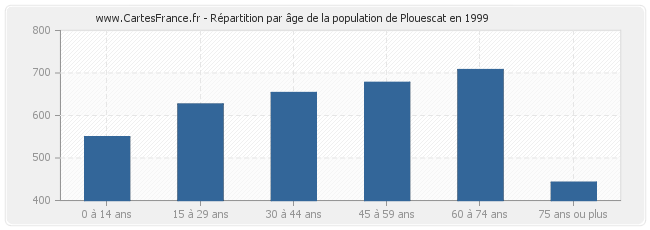 - Population de Plouescat de 60 à 74 ans : 686 habitants