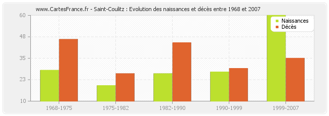 Saint-Coulitz : évolution des naissances et décès de 1968 à 2007