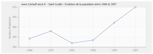 La population de Saint-Coulitz était de 420 habitants en 2007, 389 habitants en 1999, 354 habitants en 1990, 348 habitants en 1982, 372 habitants en 1975 et 357 habitants en 1968.