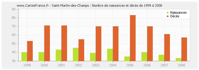 - Saint-Martin-des-Champs en 1999 : 40 naissances et 53 décès