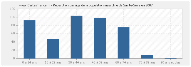 Répartition de la population masculine de Sainte-Sève par âge en 2007 :