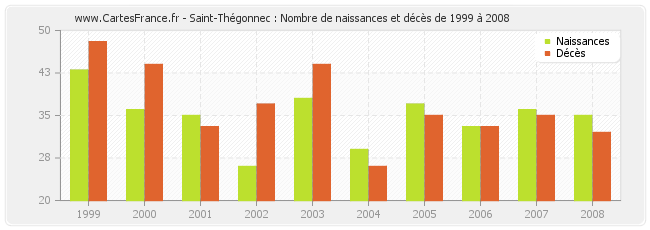 - Saint-Thégonnec en 1999 : 43 naissances et 48 décès