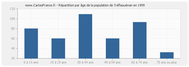 Répartition de la population de Tréflaouénan par âge en 1999 :