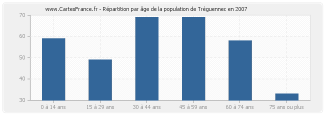 - Population de Tréguennec de 45 à 59 ans : 69 habitants