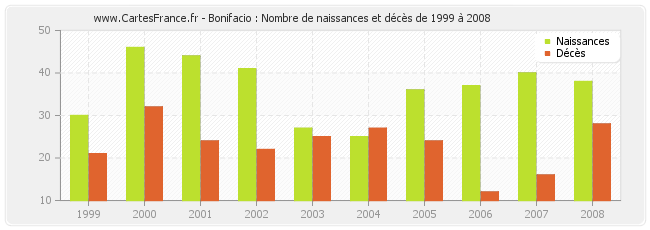 - Bonifacio en 2008 : 38 naissances et 28 décès