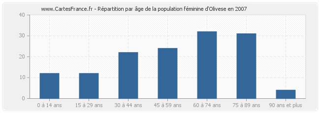 - Femmes de 60 à 74 ans habitant Olivese : 32