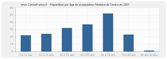 - Femmes de 60 à 74 ans habitant Tavera : 52