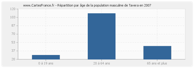 - Hommes de 20 à 64 ans habitant Tavera : 111