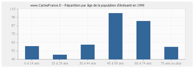 - Population d'Antisanti de 45 à 59 ans : 104 habitants