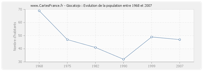 La population de Giocatojo était de 47 habitants en 2007, 49 habitants en 1999, 32 habitants en 1990, 41 habitants en 1982, 47 habitants en 1975 et 69 habitants en 1968.