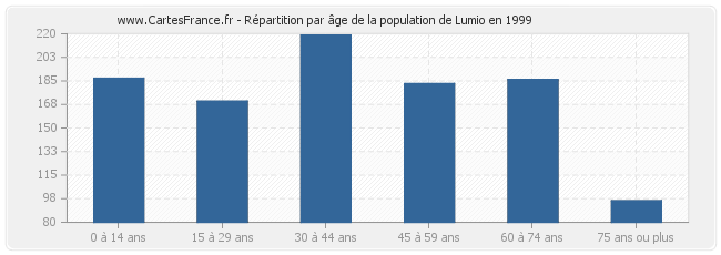 - Population de Lumio de 75 ans ou plus : 96 habitants