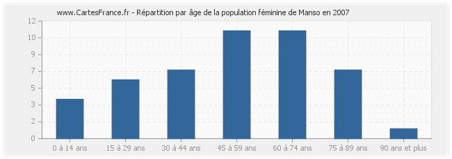 - Femmes de 45 à 59 ans habitant Manso : 11