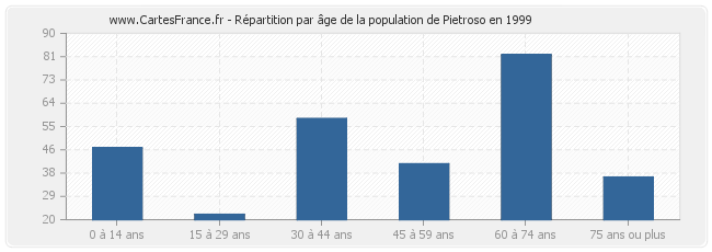 - Population de Pietroso de 60 à 74 ans : 82 habitants