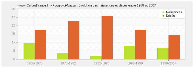 Poggio-di-Nazza : évolution des naissances et décès de 1968 à 2007