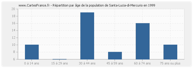 Répartition de la population de Santa-Lucia-di-Mercurio par âge en 1999 :